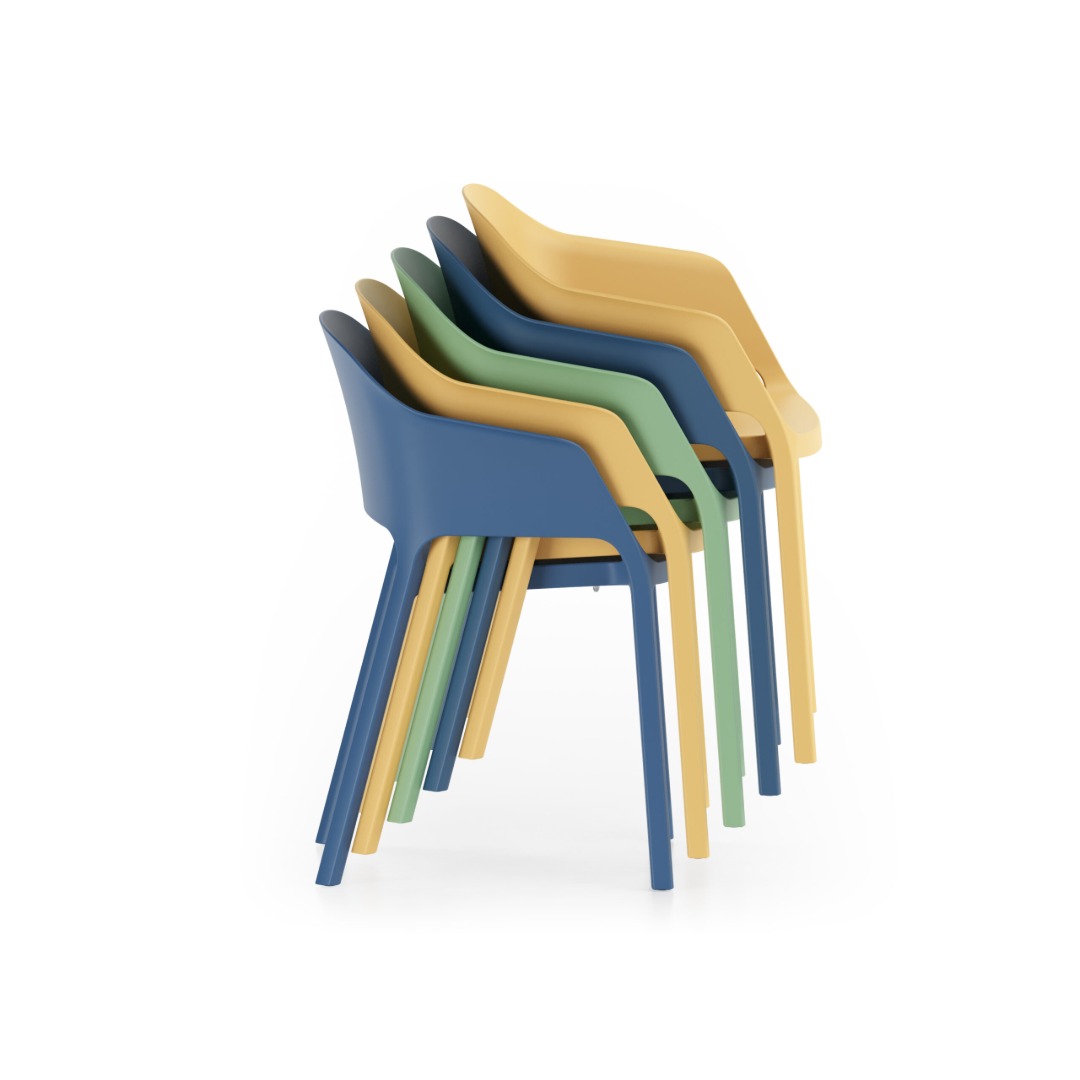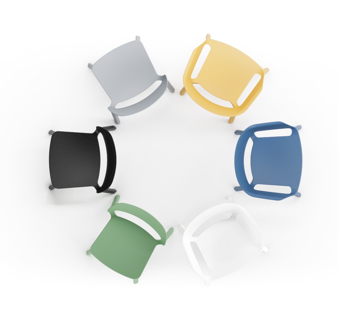 Colibrí es una colección de sillas monobloc con y sin brazos y fabricadas en su totalidad en polipropileno y con la opción de tener también material reciclado o “post- consumer”. Es una silla de gran estabilidad, de líneas suaves y envolventes y apta también para uso exterior. Es una silla liviana y versátil con varias opciones de colores, lo que hace que sea apropiada para espacios de trabajo, espacios horeca y de educación. Es apilable y tiene la posibilidad de tener el asiento tapizado