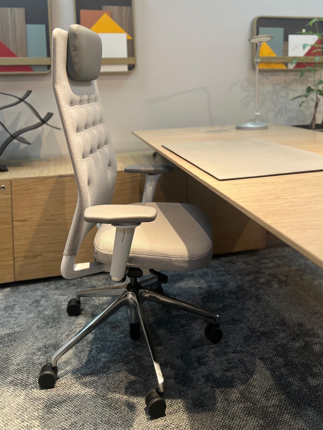 Con su acolchado compacto, el respaldo de la silla ID Trim L transmite una sensación de elegancia clásica y calidad artesanal. La estructura ofrece todo el confort de un respaldo acolchado, pero es casi tan delgada como un respaldo de malla. Con su alto respaldo, la silla ID Trim L ofrece un alivio adicional de la tensión en la cabeza y el cuello.